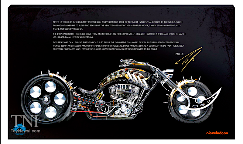 Toy News International has a look at Playmates Toys Comic-Con exclusive figure featuring the villain Bebop from Teenage Mutant Ninja Turtles: Out of the Shadows. The henchman mutant comes with his trusty trike motorcycle which features two rocket grenade projectiles. There will only be 500 available at the convention, but they're only $30 each at Nickelodeon's booth #4113. Otherwise, you'll have to pick one up on eBay.