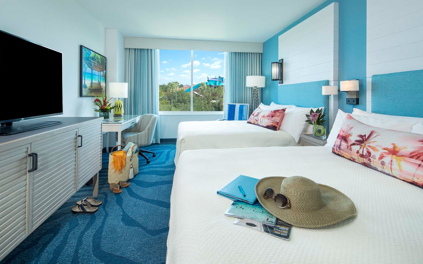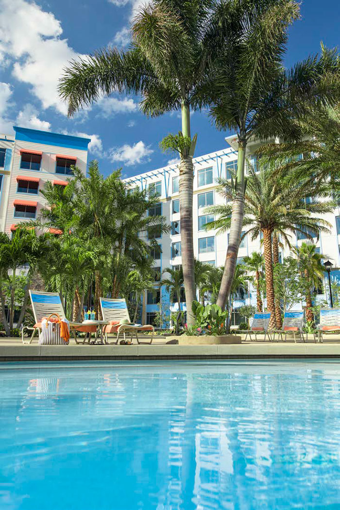 In fact, you'll never be far away from crystal-clear, serene water when you're here. You'll be greeted by waterfalls cascading into a sparkling pond upon arrival, which is your first glimpse of the amazing water features throughout the resort. There's a gorgeous pool, surrounded by two sand beaches, a quintessential Caribbean waterfall – inspired by Jamaica's iconic Dunn's River Falls – and a breathtaking lush lagoon. It's from this lagoon that you can hop on a water taxi to travel to our theme parks, CityWalk and our other on-site hotels.