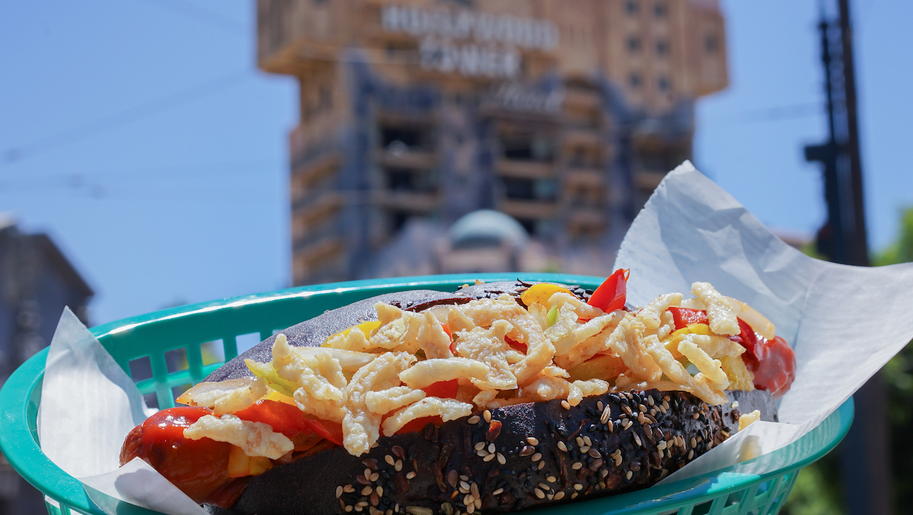 Naturally, Disney is capitalizing on your desire to battle the upcoming Tower of Terror-shaped hole in your life with a few food specials at Award Wieners in the California Adventure theme park. There's the Tower Drop Dog, an "all-beef frank dipped in red pepper ketchup, topped with grilled onions, peppers and an onion crunch on a black noir potato bun"; and The Drop, a cocktail made with Midori, Irish cream, and grenadine. As you can see from the images above, both of them look disgusting. But as tributes to a horror-themed thrill ride set in a crumbling hotel, that may be appropriate.