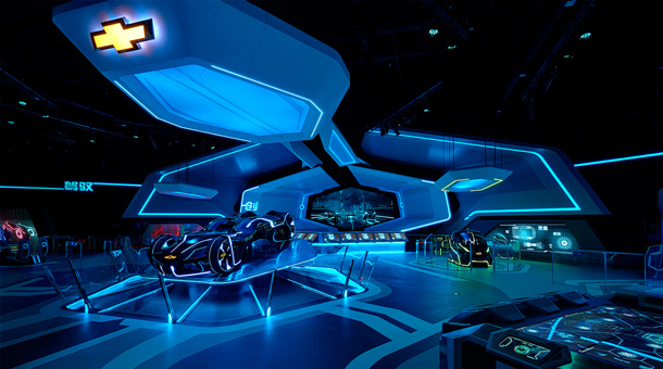 Maintaining theme park attractions is expensive business and maintaining technologically complex roller coasters inspired by the TRON series is even more expensive business. So it's not too surprising that the latest addition to Shanghai Disneyland is the awkwardly titled TRON Realm, Chevrolet Digital Challenge. Here's how it's described by the Disney Parks Blog: