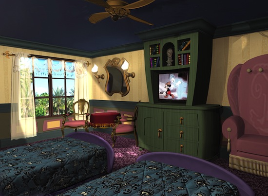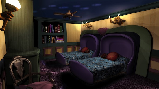 Walt Disney World has begun sending out surveys to some of its guests asking if they'd be interested in staying in themed rooms. One of the examples given was a room based on Disney's classic attraction, The Haunted Mansion, and these two photos were given as examples. You can read more about the possibility, as well as Pirates of the Caribbean rooms and more, at Attractions Magazine (via Boing Boing).