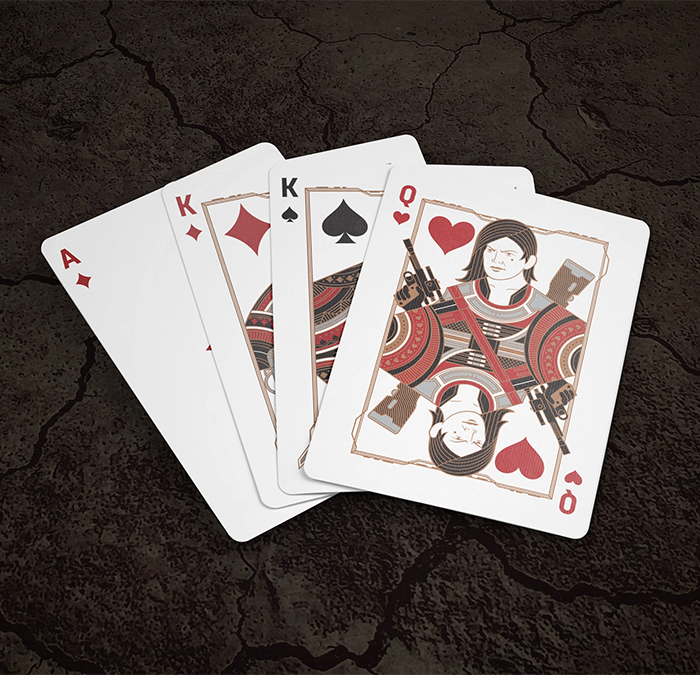 The Mandalorian Playing Cards feature completely custom artwork in every aspect of the design, with the Aces, Jokers, court cards, and back design inspired by fan-favorite characters and events.