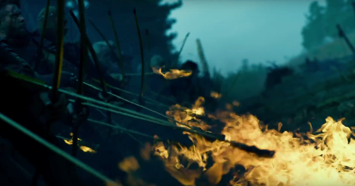 Back on the battlefield, knights light up arrows with fire, explosions rock the warriors. Are the Transformers involved in this battle somehow?