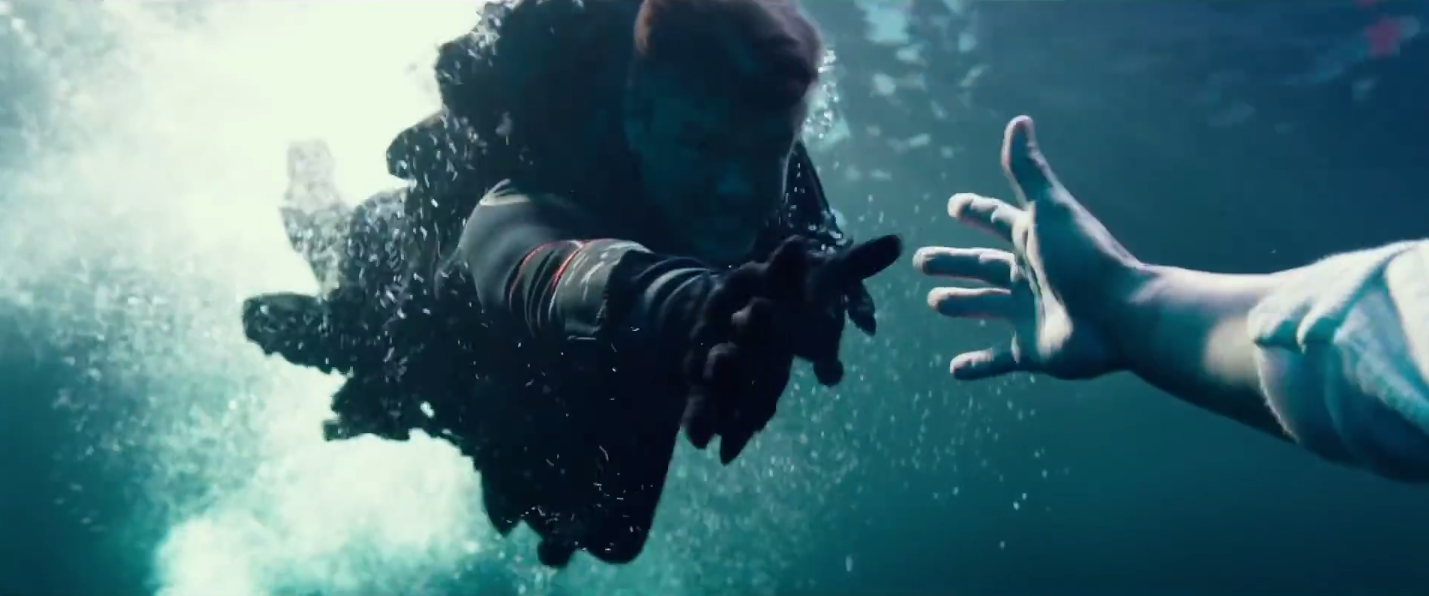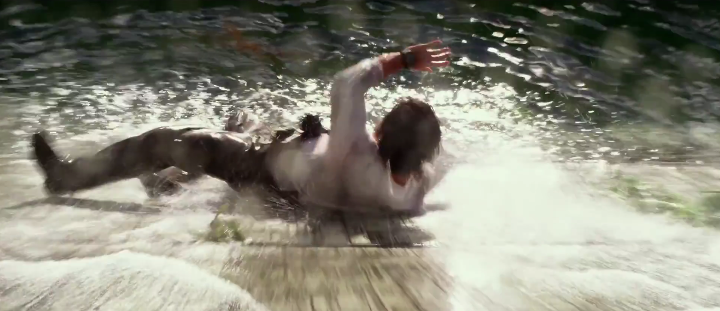 Then we see Cade slide down some kind of structure and into the water. A shot later and Josh Duhamel is reaching out to rescue him. We talked a bit about this sequence in our set visit report because it involved a giant platform on a gimbal that tilts at all sorts of angles, and it was made all the more dangerous by having thousands of gallons of water dumped on it for this sequence. You can find out more about that over here.