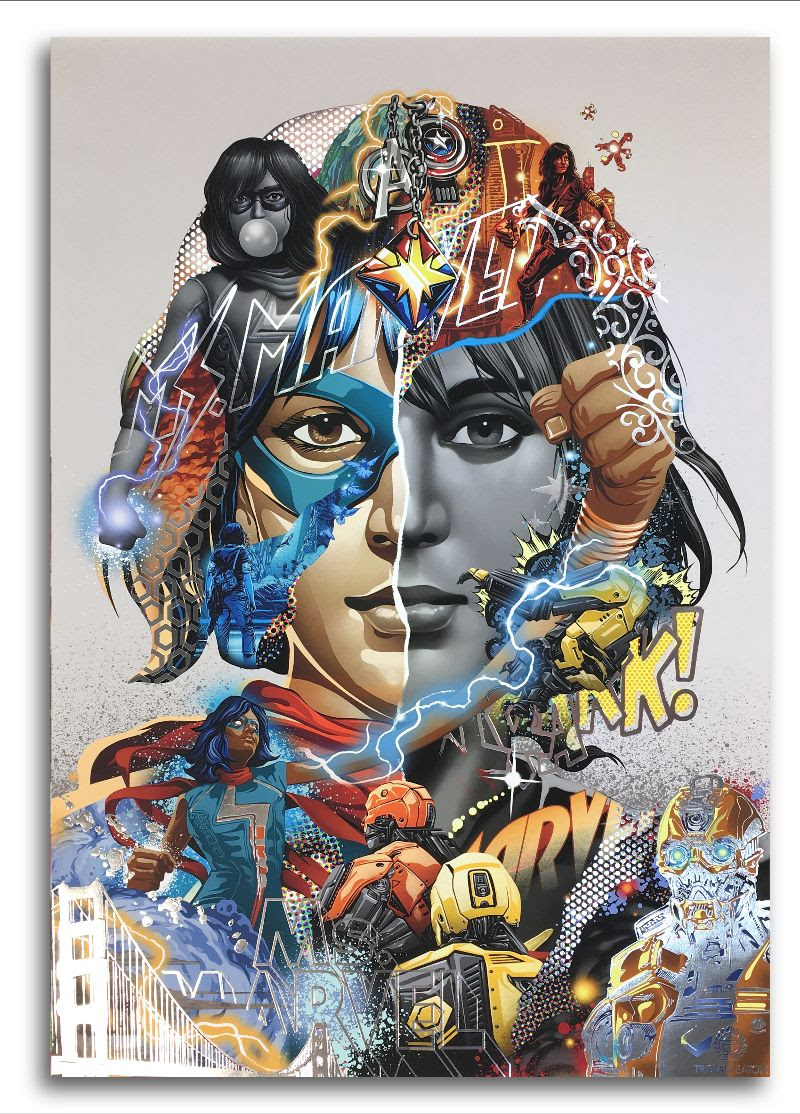 He continued, "Early last year (before the 'Apocalypse Light' as I call it), Aaron Barr and I went to Marvel HQ and boldly asked for the chance to make official Marvel Fine Art prints. I felt nervous, anxious and waaaay out of my league. But I remember having certain flashbacks to my childhood that gave me gusto. Discovering Silver Surfer in the local corner store when I was 10 years old and how it inspired me. Meeting Stan Lee at Forbidden Planet in London in 1990 and feeling like I met a god! Seeing Roy Lichtenstein's art at the Tate Modern and understanding the connection between comics and high art...These are moments that shaped who I am as a person and as an artist. What was meant to be a 15 minute meeting at Marvel become 45 minutes and the rest is history. Here I am, 32 years after picking up my first comic book, about to release my first officially licensed Marvel Fine Art prints! It's an emotional moment for myself and my team!"