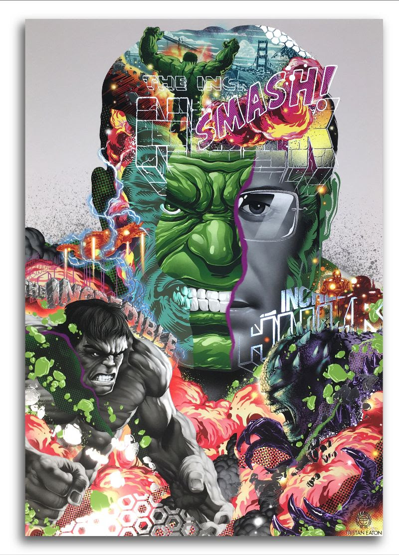 Tristan Eaton's next series of art prints is pretty super. The renowned artist, who has previously taken his unique brand of graphic art to franchises like Universal's Monsters, now tackles Marvel's The Avengers in a suite of six brand new silver foil prints featuring Hulk, Iron Man, Captain America, Black Widow, Ms. Marvel, and Thor. A limited number of these go on sale today, so read on to learn how you might be able to add these to your collection.