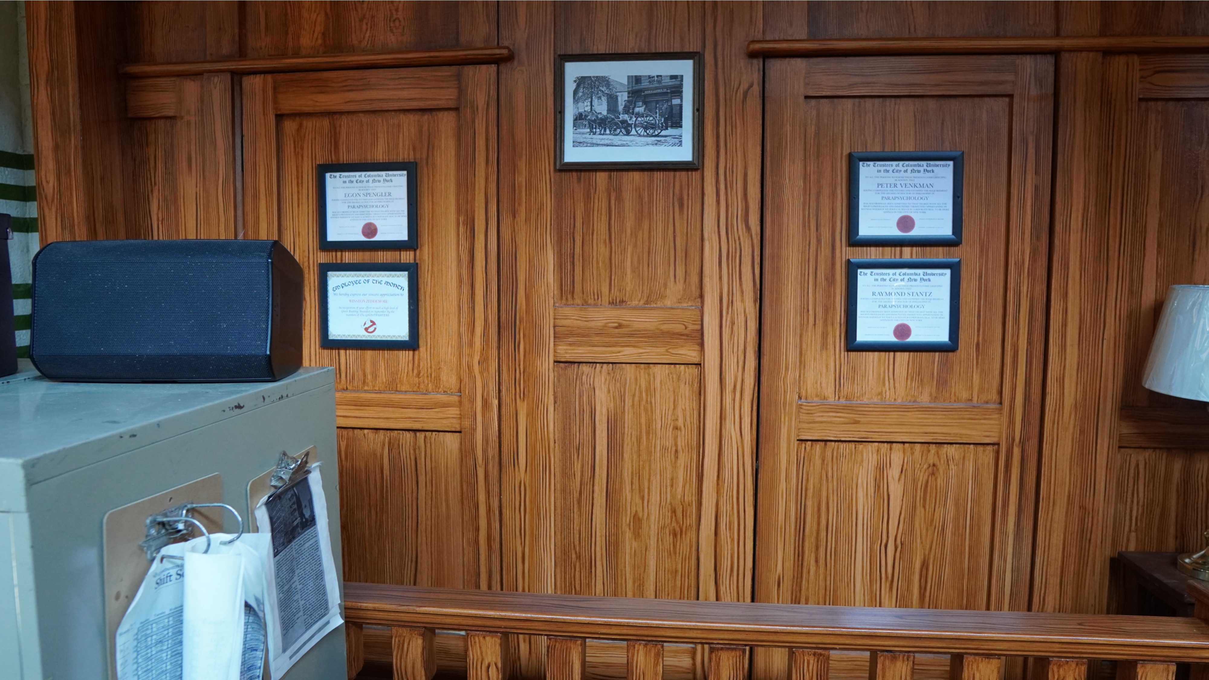 The exterior of the house is a scaled replica of the iconic Ghostbusters firehouse. As you wait in line to enter, we are told an actor playing Louis Tully will be seen outside the building on a search for the key master. You can interact with him and if you give him the correct password (what it is, I'm not sure), you might be handsomely rewarded. If you don't have the correct password, you'll get a different outcome. Outside the building is an NYC taxi cab and you can hear and see the Ecto One behind the firehouse gate.
