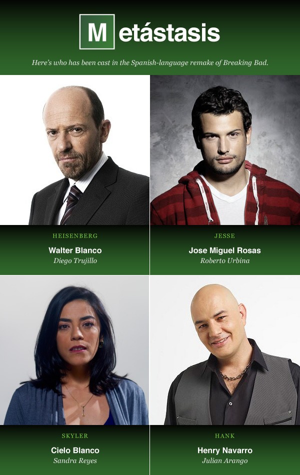 Walter White completed his two-year, five-season journey last weekend, but for Walter Blanco, the fun is just beginning. Univision has just offered a first look at Metastasis, its upcoming Spanish-language remake of Breaking Bad.