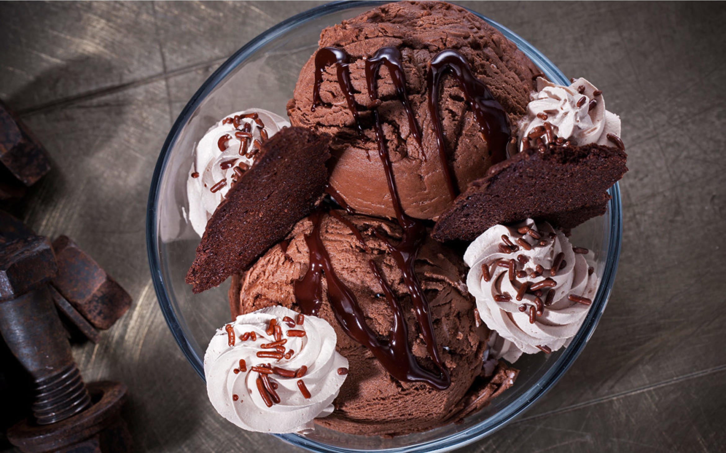 The sundaes are anything but ordinary with flavors like Salted Caramel Flan, Chocolate Brownie Bark and S'mores. This extreme twist on a summer favorite features layers of chocolate ice-cream, chocolate sauce, marshmallow cream and graham crackers.