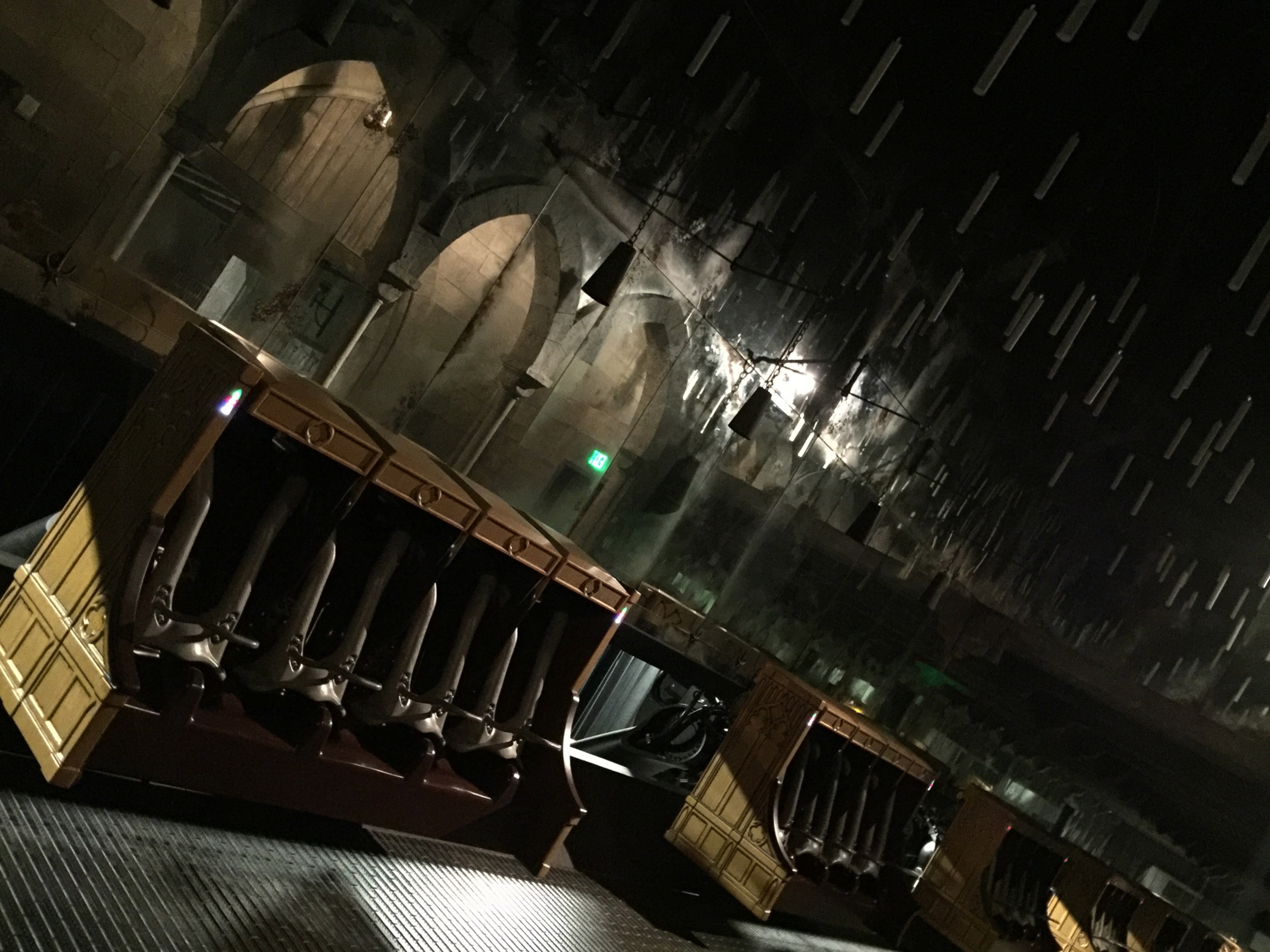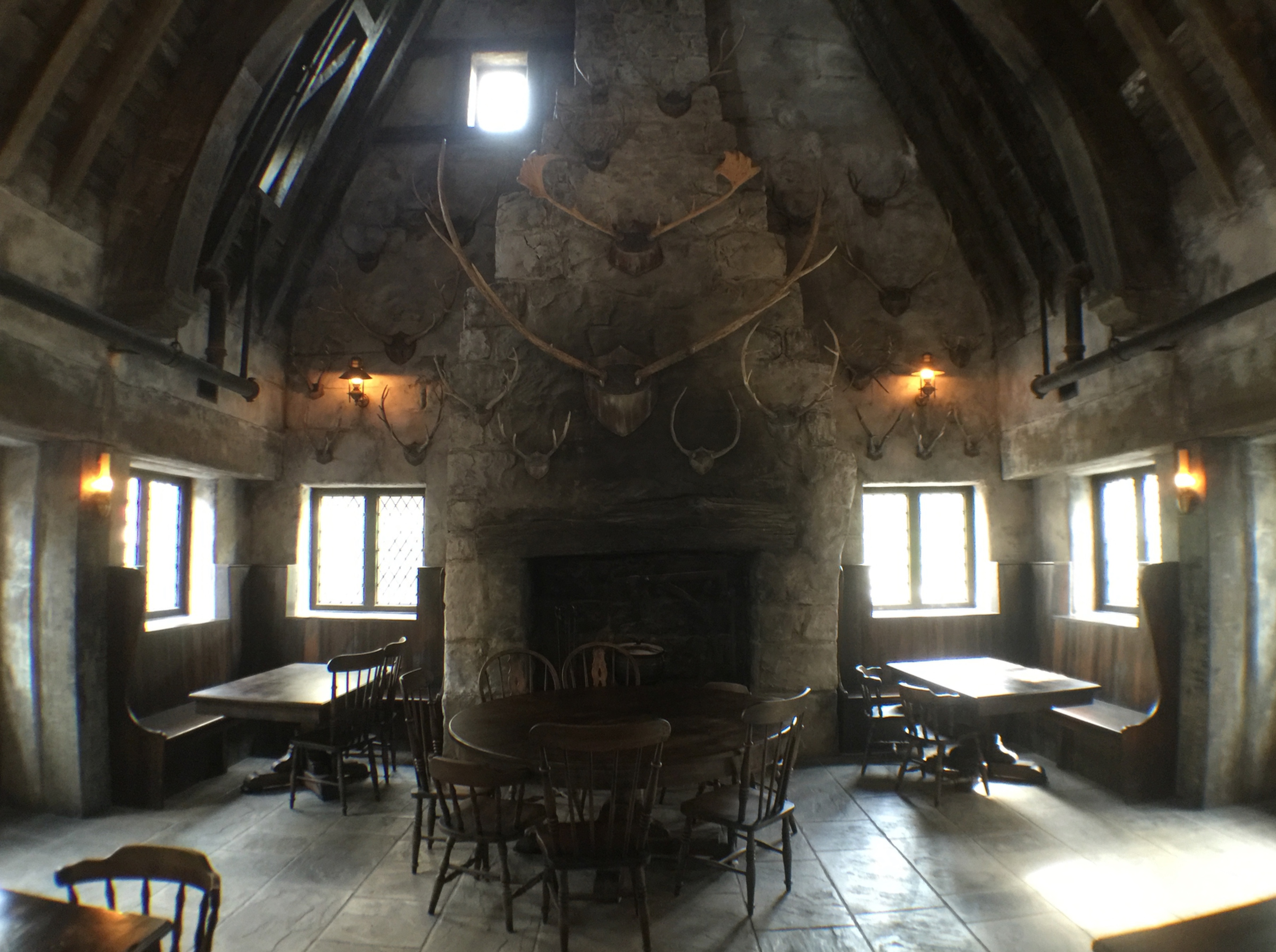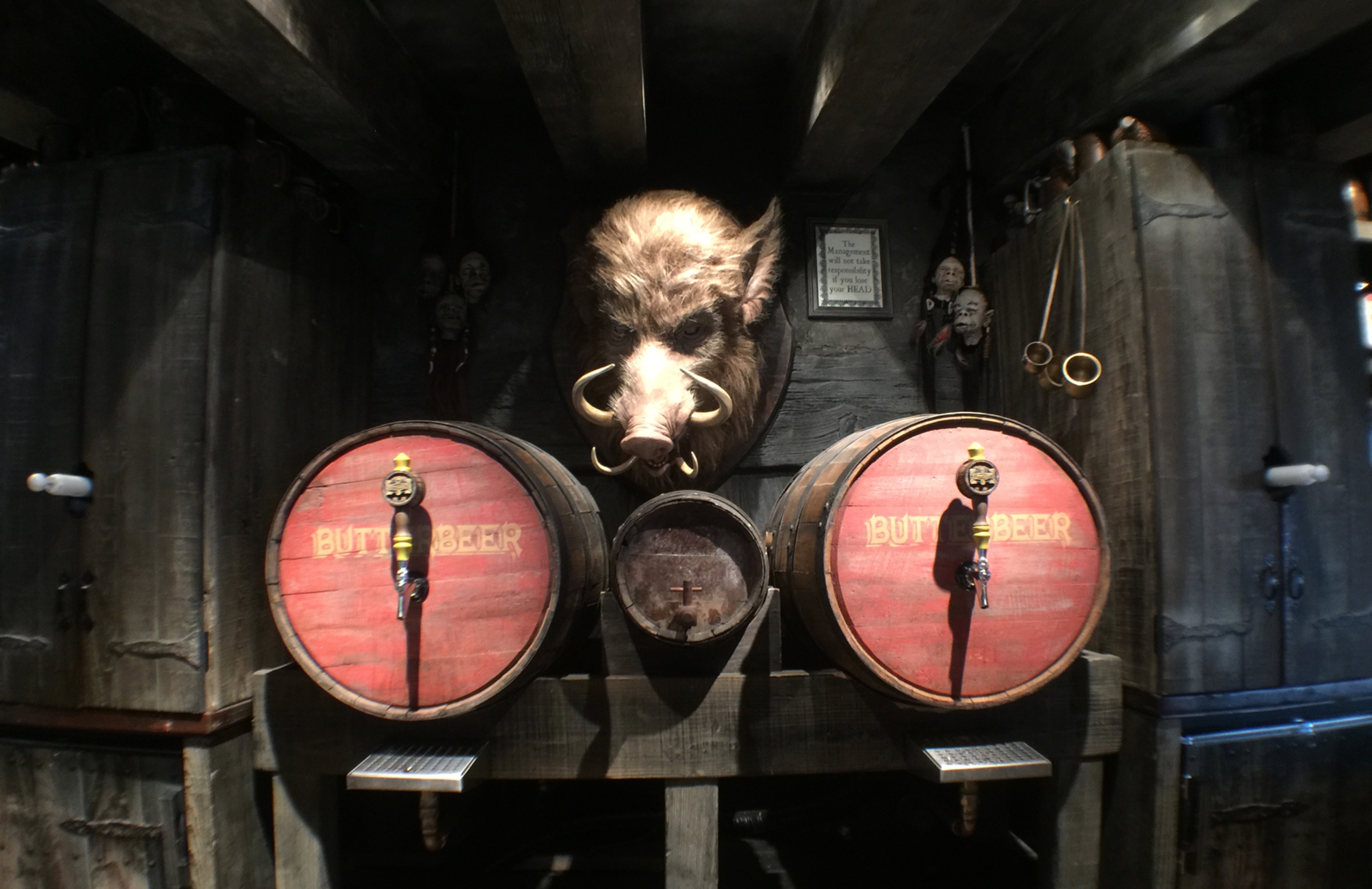 Other screen-used props from the Harry Potter films are also scattered throughout the land, including some background brooms on the wall in the Three Broomsticks tavern and the actual desks and chalkboard from the Defense Against the Dark Arts classroom inside Hogwarts (in the queue for the Harry Potter and the Forbidden Journey ride). As Gilmore says: