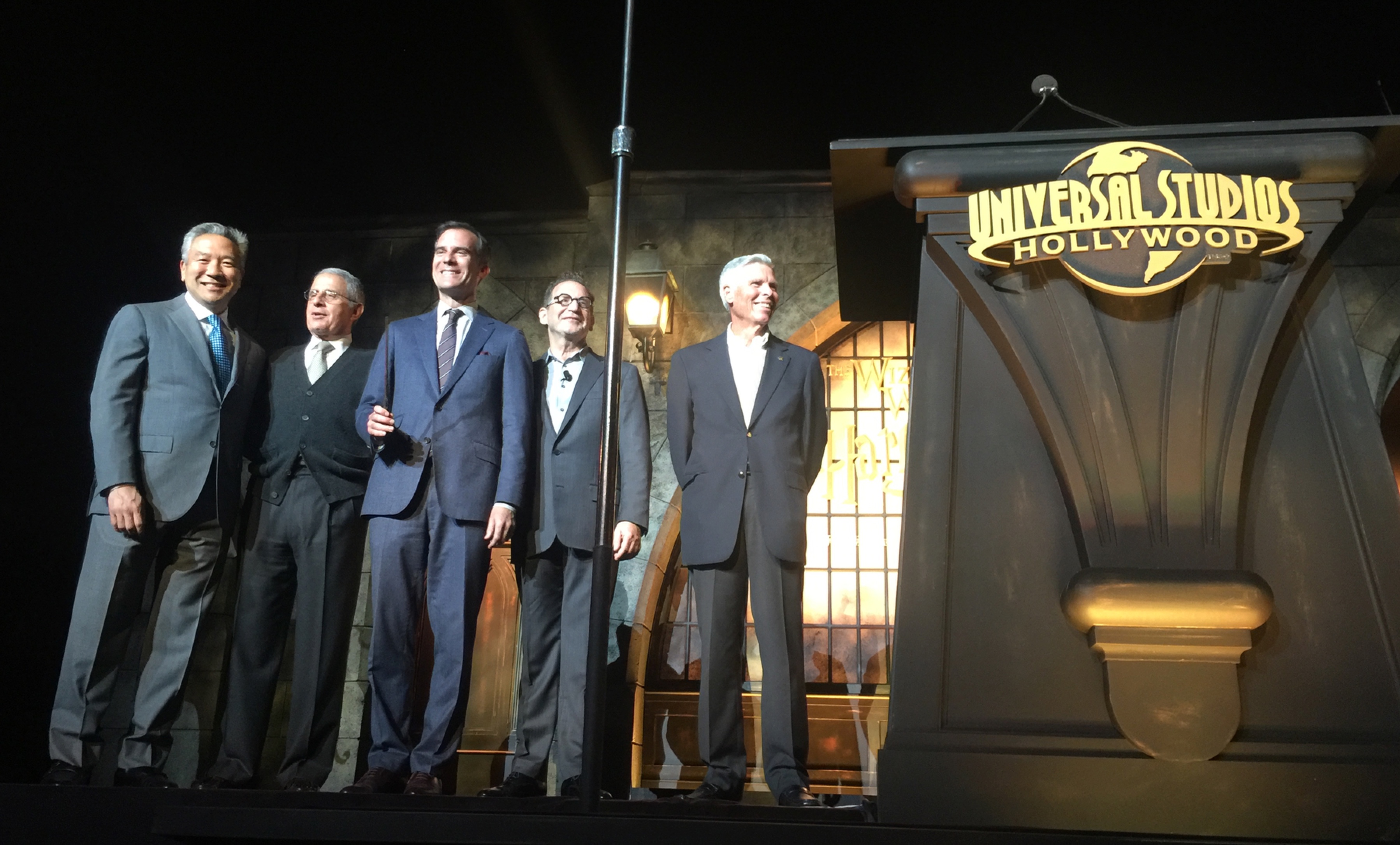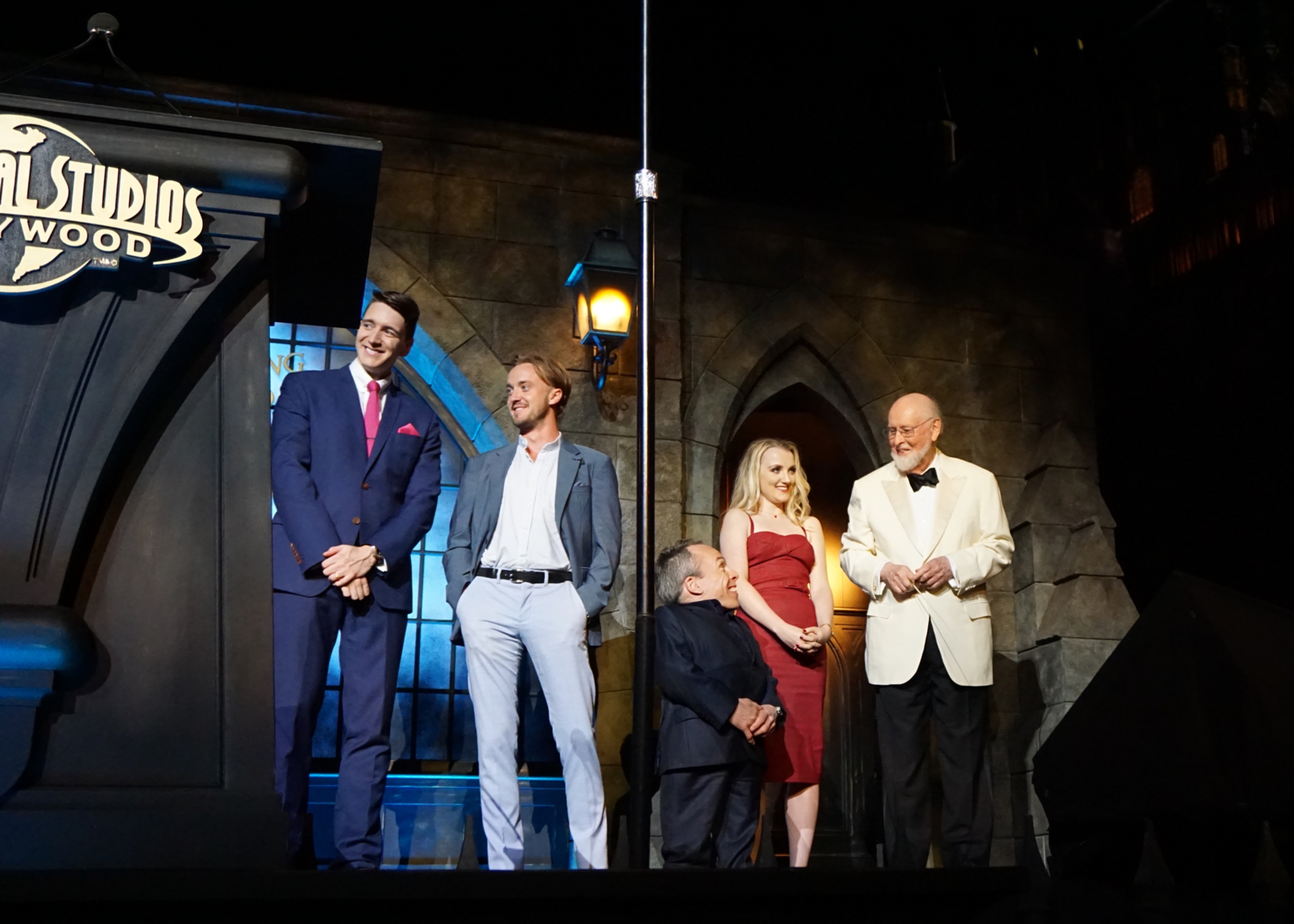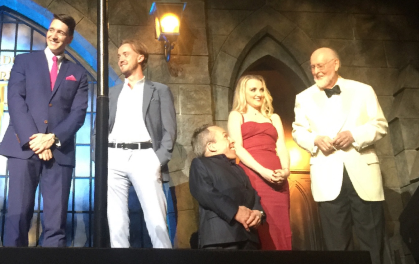 Also in attendance at the Grand Opening was some stars from the Harry Potter films, including Warwick Davis (Professor Flitwick), Tom Felton (Draco Malfoy), Evanna Lynch (Luna Lovegood) and James and Oliver Phelps (Fred and George Weasley). Other celebrities were on hand to be the first to experience the West Hollywood Coast version of the Wizarding World, including icon Steven Spielberg.