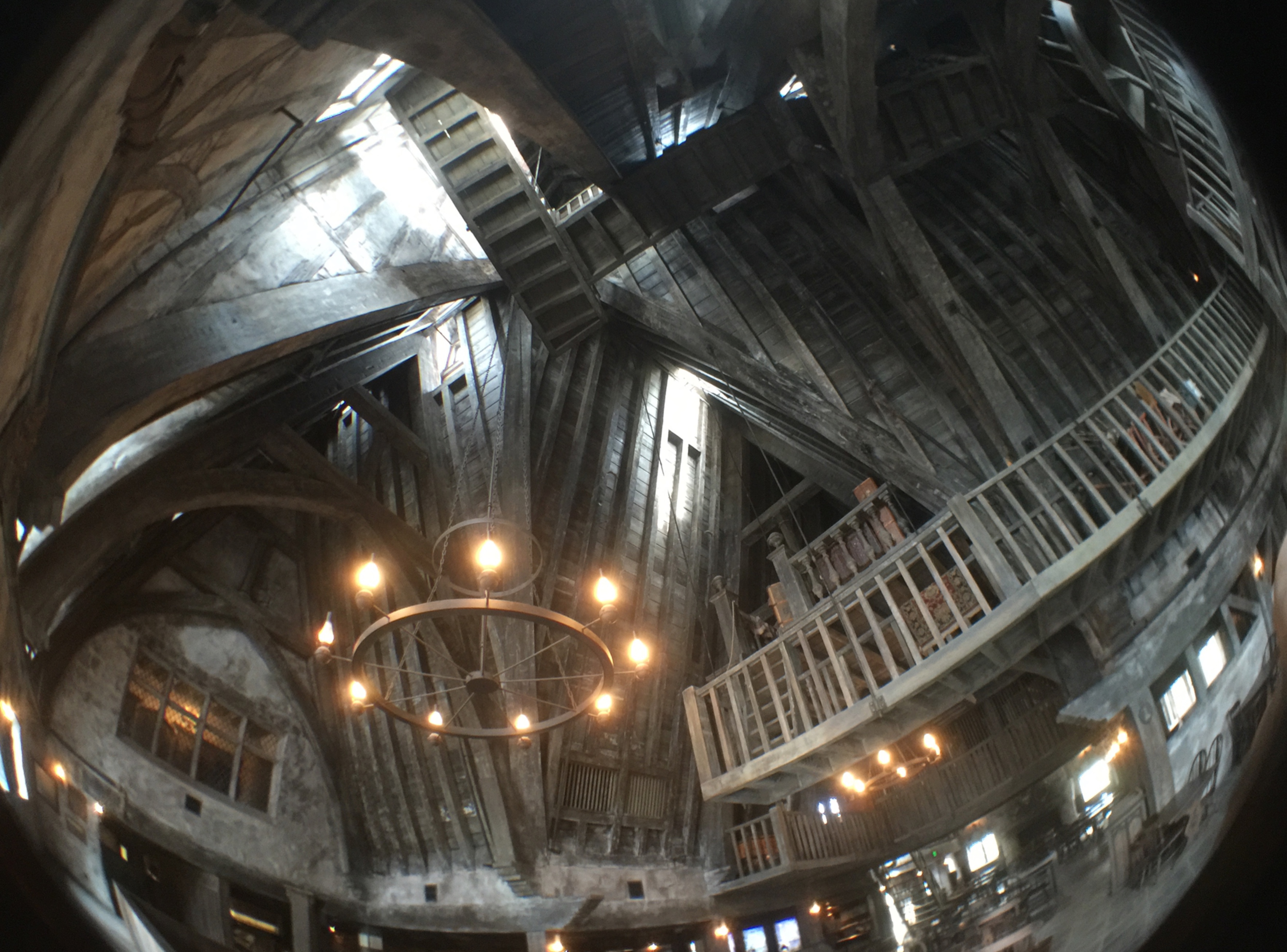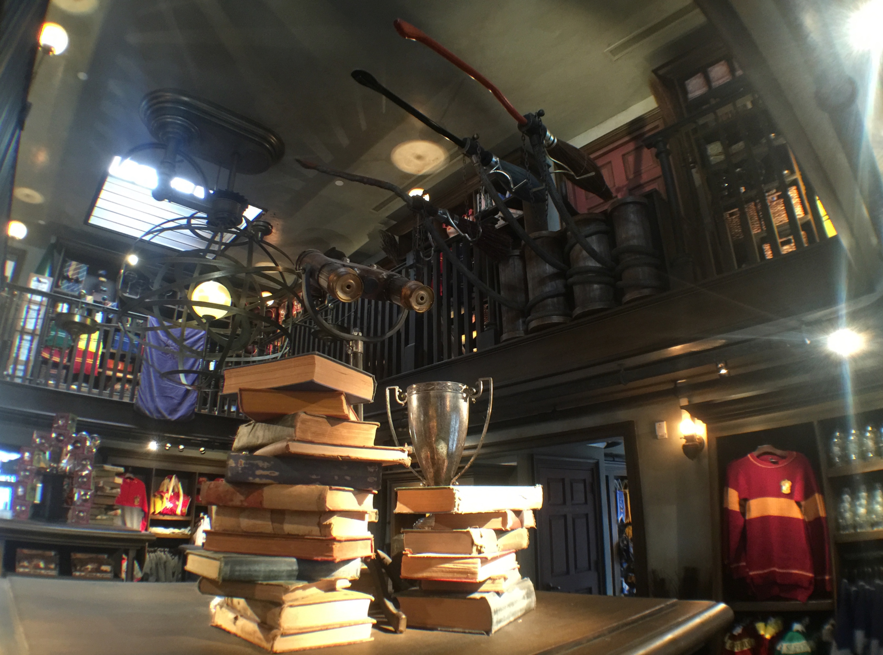Most of the shops from the Orlando Wizarding World are recreated here in slightly different orientations. Gilmore jokes that "through enchantment they have relocated themselves." He says: